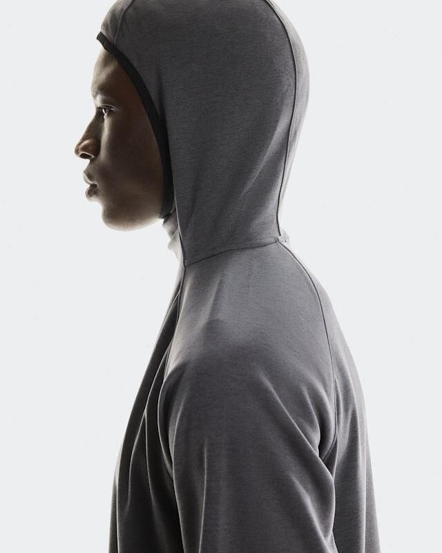 A fitted hood and thumbholes keep the cold out. Its regular fit and underarm inserts give your body more freedom to move. And strategically placed reflective logos help you shine, even with a backpack on.
